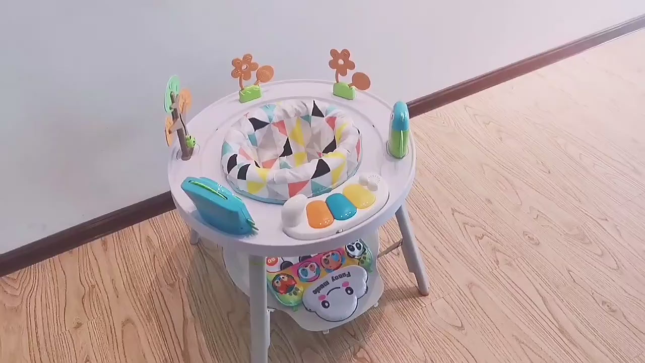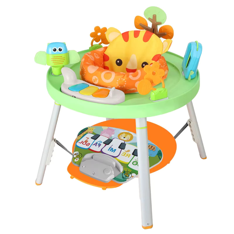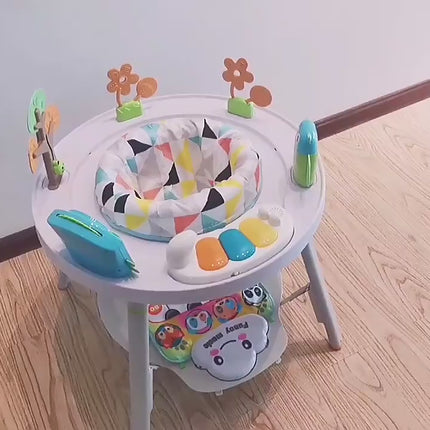 كرسي قفز وطاولة أنشطة تعليمية 2 في 1 للأطفال يجمع بين القفز الممتع والتعلّم في تصميم آمن ومتين. قاعدة ثابتة ومقعد يدور 360° لسهولة الوصول للألعاب، ويساعد على تنمية التوازن والتنسيق والمهارات الحركية الدقيقة.