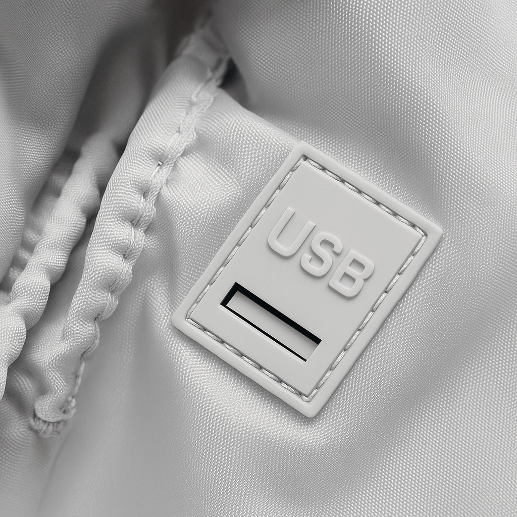 منفذ USB خارجي مدمج لشحن هاتفك أو أجهزتك بسهولة أثناء التنقل عن طريق توصيل الباور بنك داخل الحقيبة.